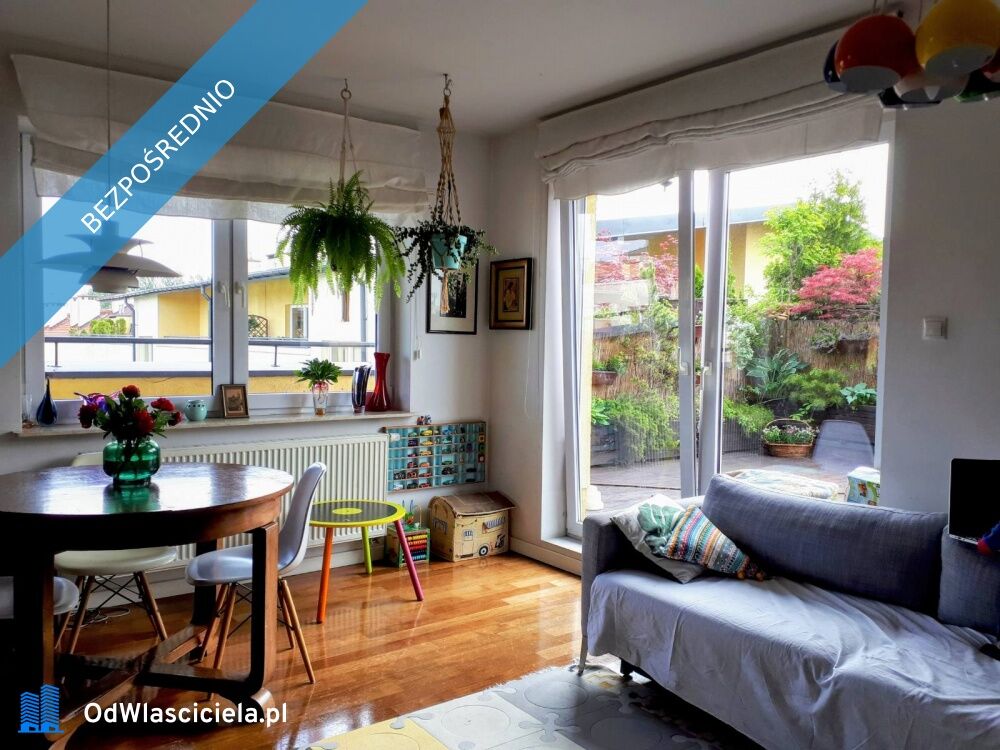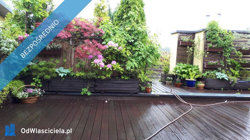 Taras, a właściwie piękny, zagospodarowany ogród z wieloletnimi roślinami ( automatyczne nawadnianie) i miejscem zabawy dla dzieci. Nic nie zasłania nieba nad głową;-)