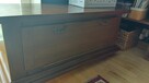 Bibloteczka z pöłkami i dolnymi szafkami zamykanymi z dużym blatem kolor ciemny orzech. Do kompletu dodaje łóżko z ...