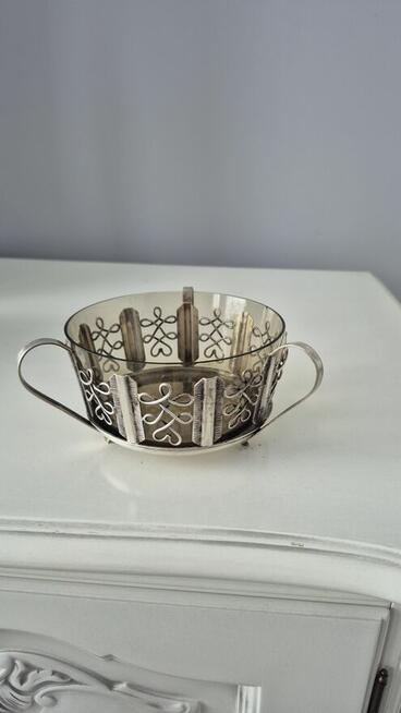 Oferuję piękna cukiernice platerowana.Pochodzi z renomowanej wytwórni platerow Hefra Warszawa lata 60-70. Wkład szklany ...