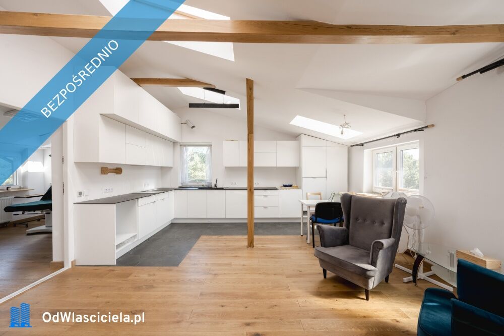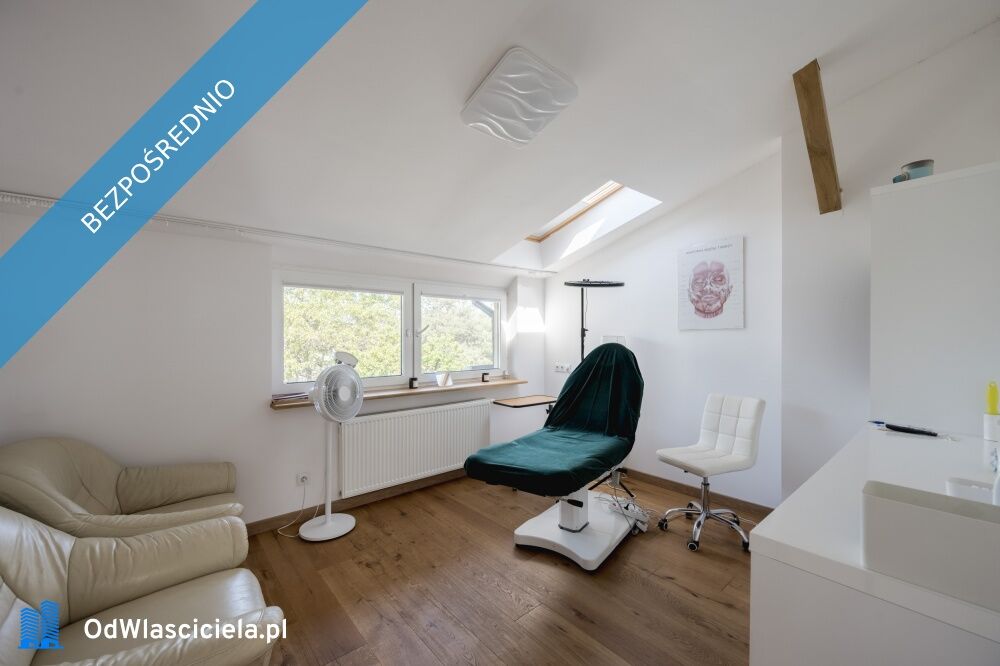 Obecnie na dolnym piętrze domu funkcjonują gabinety terapeutyczne, które zostaną przeniesione w inne miejsce wraz ze sprzedażą domu.