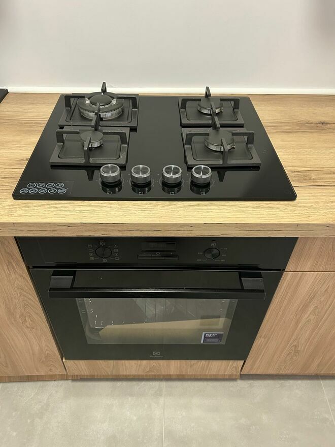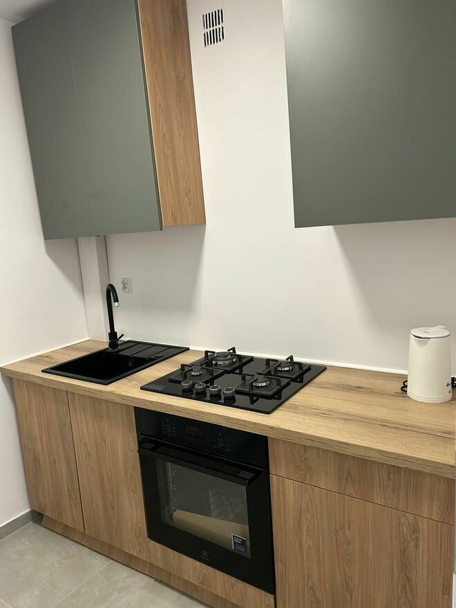 W cenie lokalu pozostaje zabudowa kuchenna ze sprzętem AGD ( kuchnia gazowa, piekarnik elektryczny, lodówka).
