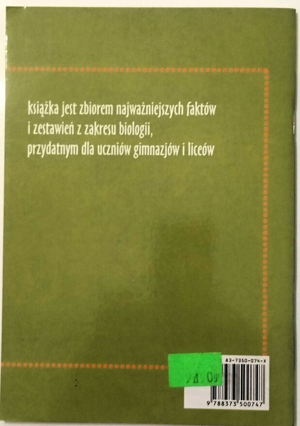 Małe tablice biologiczneKsiążka jest zbiorem najważniejszych faktów i zestawień z zakresu biologii