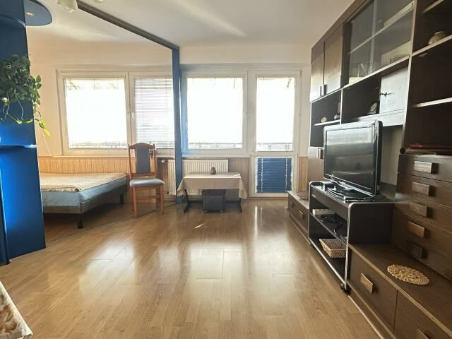- ogromny 25m2 salon z wydzielonym, widnym aneksem sypialnym,