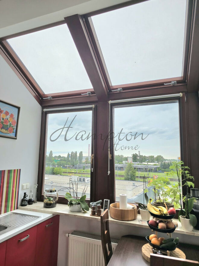· mieszkanie ma 2 poziomy, a w najwyższym punkcie sięga 4,8 m wysokości