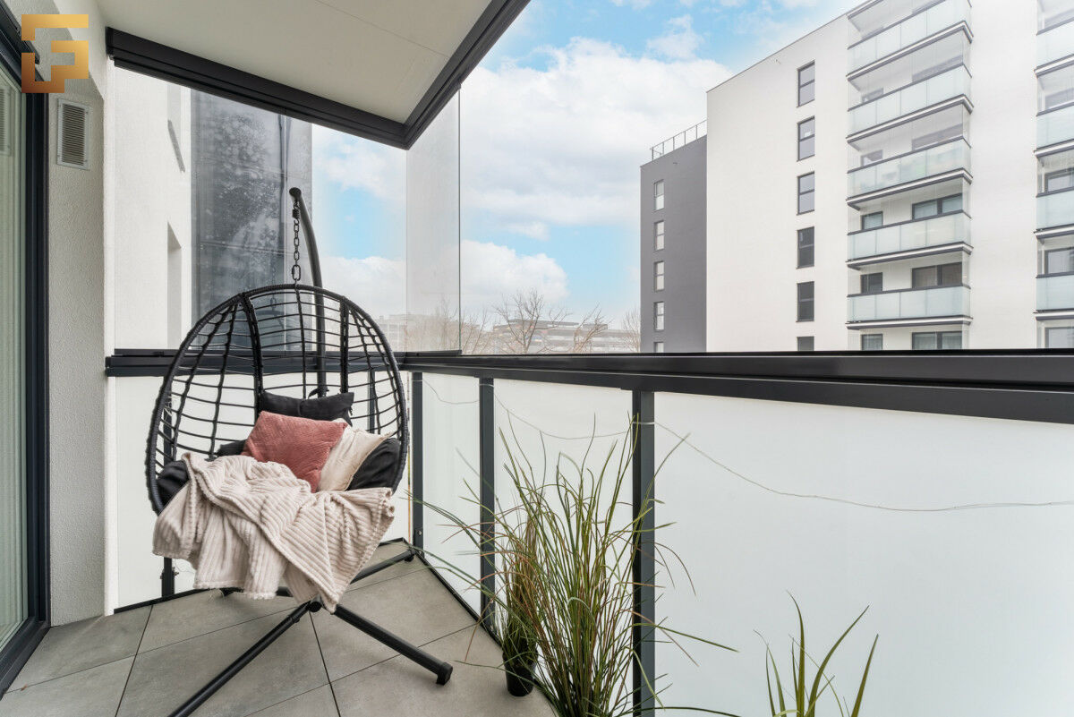 Mieszkanie jest bardzo ciche i komfortowe, a balkon został dodatkowo wyposażony w ekrany dźwiękoszczelne, które skutecznie izolują zarówno hałas, jak i zmiany temperatury. Co istotne, wyjście na balkon prowadzi z dwóch pomieszczeń, co zwiększa funkcjonalność tej przestrzeni i pozwala korzystać z niej w różny sposób.