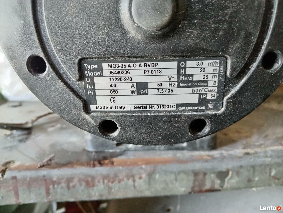 Dzień dobry . Mam do sprzedania dwie pompy o specyfikacji jak na tabliczkach znamionowych . Używane w budynkach piętrowych do podnoszenia wody z 10 na 12 piętro . Używane przez ok. 2 lata . Cena za sztukę 1300złTel: 506 - pokaż numer telefonu -